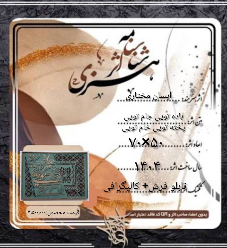 اولین کسی باشید که دیدگاهی می نویسد “تابلو کالیگرافی” لغو پاسخ